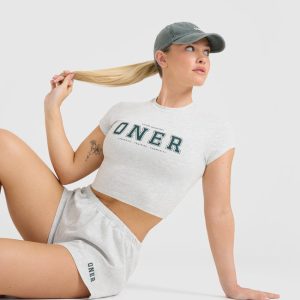 Lightweight Shorts with Printed Logo Light Grey Marl