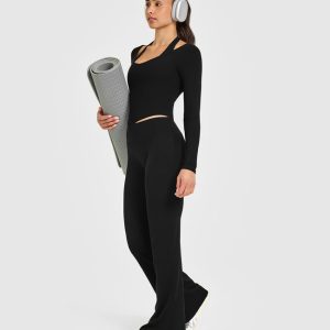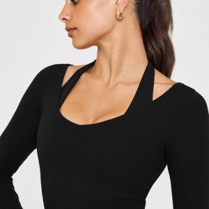 Mellow™ Rib V Neck Mid Long Sleeve Top Black