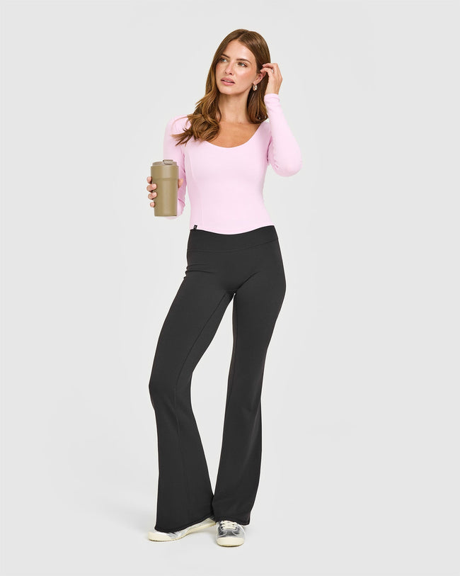 Mellow™ Rib V Neck Mid Long Sleeve Top Chalk Pink