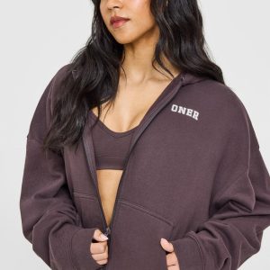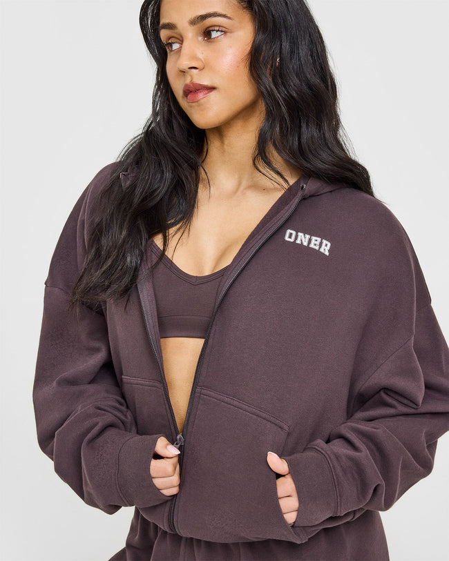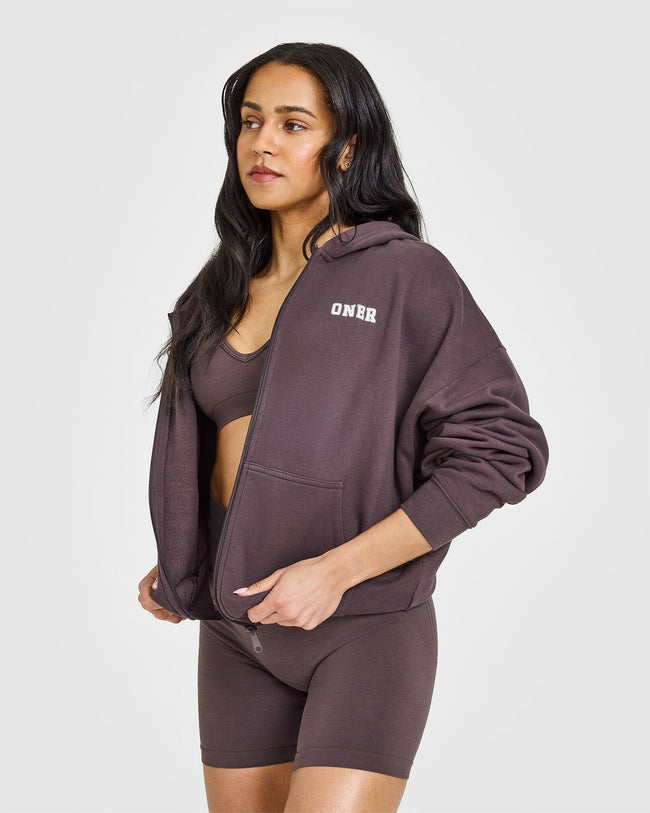 Mid Weight Zip Through Hoodie Umber Brown