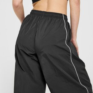Oversized Piped Woven Straight Leg Track Bottoms Soft Black