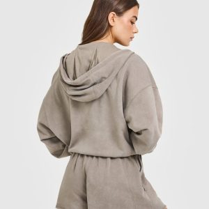 Raw Lounge Oversized Zip Hoodie Washed Minky