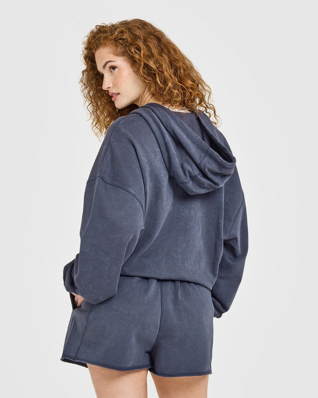 Raw Lounge Oversized Zip Hoodie Washed True Blue