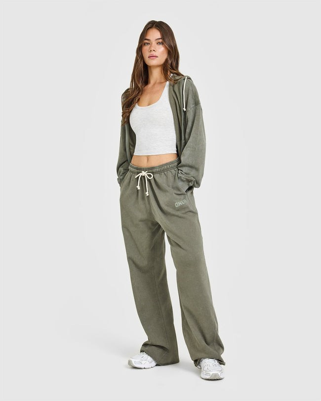 Raw Lounge Wide Leg Joggers Washed Alpine Green