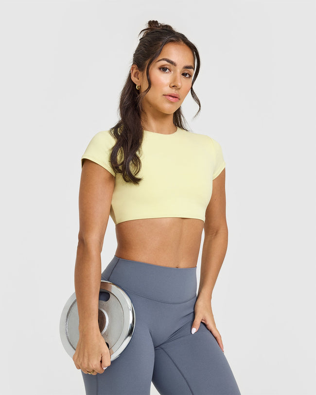 SoftMotion™ Short Sleeve Crop Top Pastel Yellow